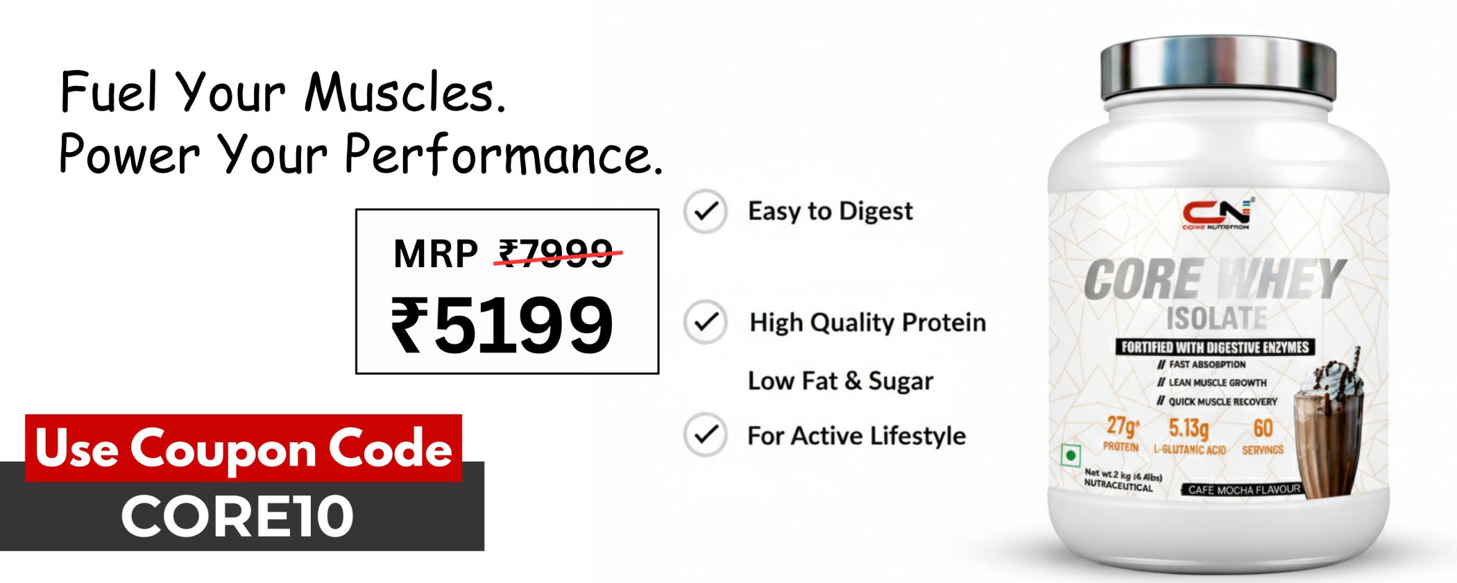 "Core Whey Protein elevated my training. Faster recovery, noticeable strength gains. The best in the market!"